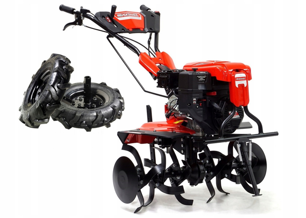 Koła gumowe znajdujące się w wyposażeniu o rozmiarze 4.00-8" umożliwiają zmianę glebogryzarki w mikrociągnik i wykonanie wielu dodatkowych prac w ogrodzie.