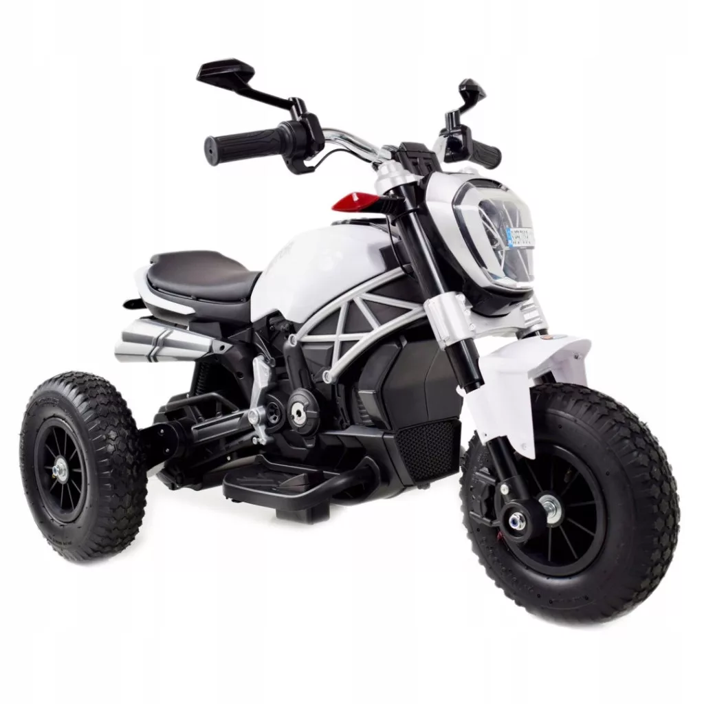 Dźwięki jazdy motoru,, pompowane koła, światła, miękkie siedzenie, nowoczesny panel, gaz w manetce, hamulec nożny