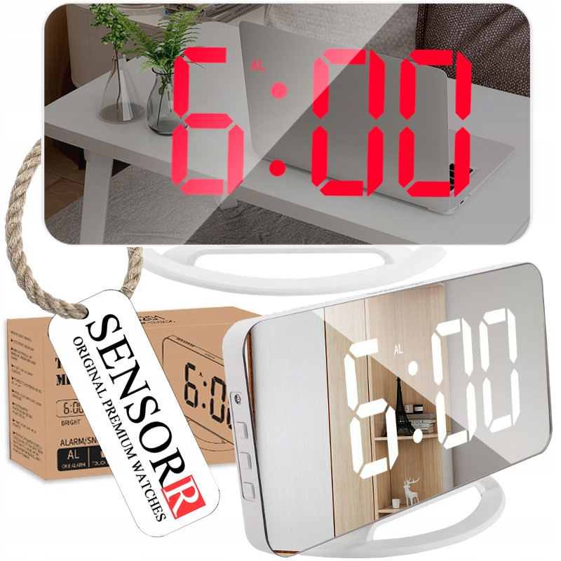 Prezentujemy wysokiej jakości zegar biurkowy - budzik marki SENSORR z nowoczesnym EKRANEM LUSTRZANYM LED i wieloma funkcjami. Jest to najnowszy model z katalogu na 2024 rok (NAJNOWSZA SERIA), do którego produkcji użyto komponentów najnowszych generacji - dużo lepsza jakość i parametry w porównaniu ze starszymi wersjami.