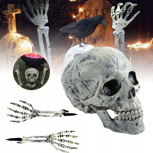 ????????????Stwórz przerażającą atmosferę Halloween: Realistyczna czaszka szkieletu i ramiona to niezbędne elementy do ogrodu, podwórka, cmentarza i trawnika na Halloween. Dolna szczęka czaszki umożliwia otwieranie i zamykanie ust. Dłonie są regulowane w nadgarstkach, a ramiona są połączone w łokciach z obrotowymi palikami, przeguby łatwo się poruszają i pozostają w miejscu, bardzo łatwo je umieścić w ziemi, tworząc scenę cmentarną, która zaskoczy sąsiadów znajomych!