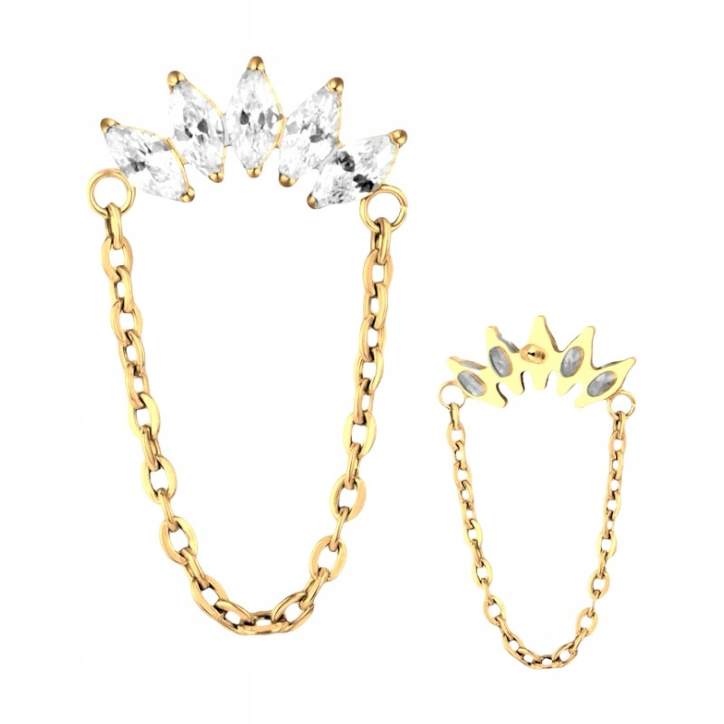 Wykonany z najwyższej jakości Tytanu Chirurgicznego i pokryty lśniącą powłoką PVD, ten kolczyk zapewnia nie tylko wspaniały wygląd, ale również trwałość na lata. Łańcuszek dodaje niepowtarzalnego charakteru, tworząc modny akcent, który pasuje do każdej okazji.