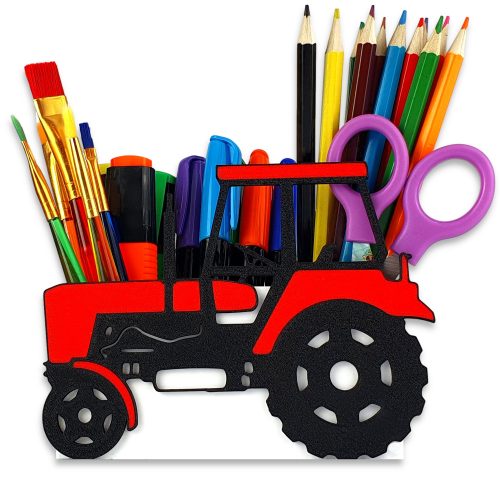 Organizer na kredki dla dziecka z traktorem - idealne rozwiązanie do przechowywania przyborów plastycznych!