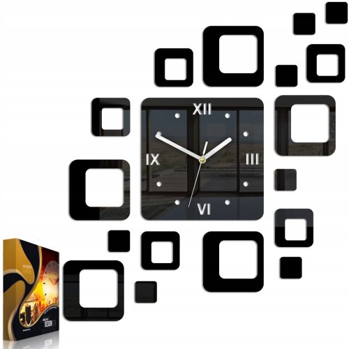 Montaż zegara jest szybki i wygodny. Tarcza ze wskazówkami jest do zamontowania na haczyk. Elementy dekoracyjne montuje się do ściany za pomocą taśmy montażowej. Każdy element jest podklejony taśmą