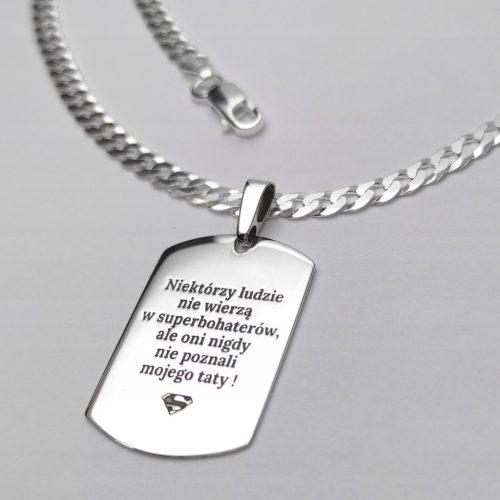 Przedmiotem sprzedaży jest solidny srebrny łańcuszek pancerka wraz ze srebrnym nieśmiertelnikiem wytwarzanym w naszej pracowni. Całość wykonana z 14,5 gram srebra próby 925!