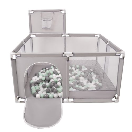 ⭐Składany kojec z plastikowymi piłkami w kształcie mini-boiska zapewni Twojemu dziecku godziny zabawy. Wewnątrz jest wystarczająco dużo przestrzeni, aby w zabawie mogło uczestniczyć swobodnie kilkoro dzieci. Jednocześnie kojec można w łatwy sposób złożyć, dzięki czemu można go schować, lub zabrać ze sobą na wczasy, piknik, czy do znajomych. Jedna ze ścianek jest wyposażona w siatkowy kosz do koszykówki umożliwiając małym dzieciom rywalizację w grze zespołowej.