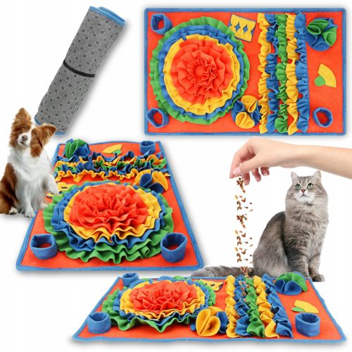Mata składa się z wielu warstw materiału, pomiędzy którymi można ukryć ulubione smakołyki Twojego pupila. Zadaniem zwierzęcia jest odszukać je wszystkie, używając swojego doskonałego węchu. Im więcej warstw i ukrytych smakołyków, tym dłużej Twój pupil będzie zajęty.