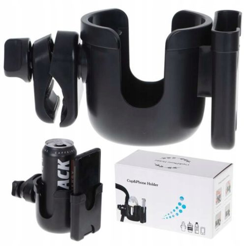 Uchwyt pasuje do większości wózków oraz pomieści wszystkie rodzaje telefonów i pojemników na napoje: butelki, bidony, termosy, kubki - wszystko będzie doskonale pasować!