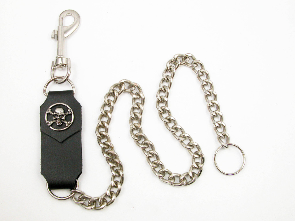 łańcuch, skórzana ozdoba z czaszką w obręczy