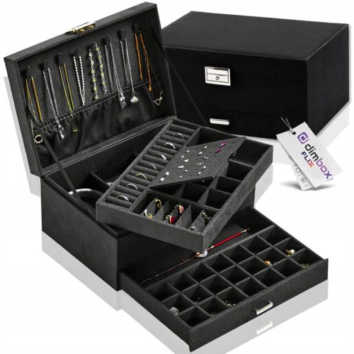 Nasza szkatułka składa się z 3 poziomów, dzięki którym wygodnie zorganizujesz swoją kolekcję biżuterii: