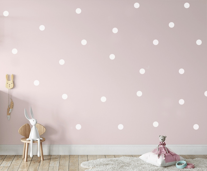 Zestaw zawiera 105 szt. białych kropek o wymiarach 5 cm.