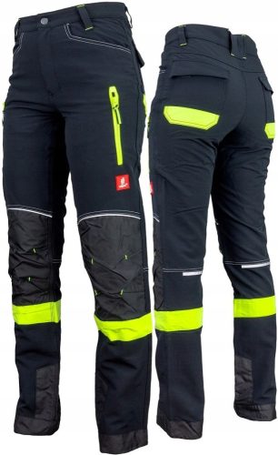 Spodnie URG-719 zostały starannie wykonane z materiału typu SOFTSHELL. Dzięki temu są elastyczne oraz bardziej odporne na wiatr i wodę. Posiadają dodatkowe wzmocnienia na kolanach i nogawkach. Funkcjonalne kieszenie zapinane na zamki i rzepy pozwalają na przechowywanie akcesoriów zawsze przy sobie. Elementy odblaskowe poprawiają widoczność użytkownika po zmroku.