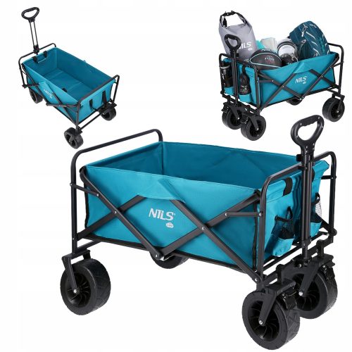 WÓZEK TURYSTYCZNY 100L NC1607 marki NILS CAMP - niezawodny partner w każdej przygodzie. Niezależnie od tego, czy planujesz rodzinne wakacje na plaży, pełen relaksu weekend na kempingu, czy energiczne wyjście na festiwal muzyczny - ten wózek to kwintesencja funkcjonalności i stylu, stworzony, aby towarzyszyć Ci w najróżniejszych miejscach i sytuacjach.