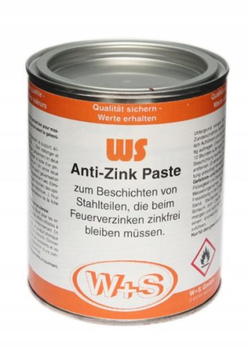 WS Anti Zink to pasta anty cynkowa służąca do zabezpieczania gwintów, spawów oraz innych powierzchni przed wytrawieniem oraz cynkowaniem ogniowym. Antycynk efektywnie zabezpiecza powierzchnie w temperaturze do 450°C. Pastę należy aplikować pędzlem na elementy przeznaczone do zabezpieczenia przed procesem cynkowania ogniowego. Po zakończonej pracy pasta anty-cynkowa jest łatwo usuwalna 1 L - wystarczy spłukać ją pod ciśnieniem lub usunąć mechanicznie.