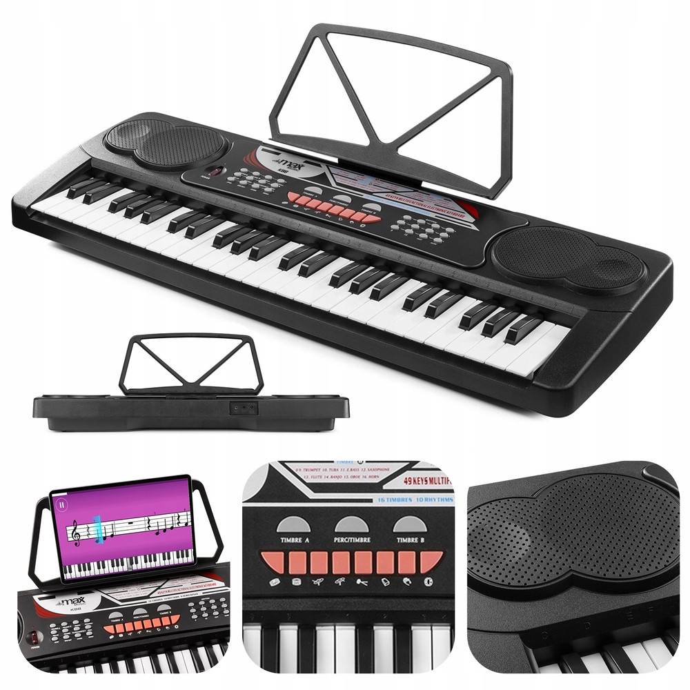MAX KB8 to wspaniały keyboard dla dzieci i dorosłych, który pozwala rozpocząć naukę gry na klawiszach/ pianinie. MAX KB8 jest intuicyjny, co ułatwia obsługę. Keyboard jest gotowy do gry niemal natychmiast po rozpakowaniu. Posiada wbudowane głośniki dzięki czemu możesz grać dla większej publiki. Dodatkowym atutem jest również uchwyt na smartphone lub tablet, dzięki czemu możesz stawiać pierwsze kroki czerpiąc pomoc i inspirację z szerokiego wachlarza aplikacji dostępnych na każde urządzenie mobilne. Z keyboardem MAX KB8 dzieci i dorośli mogą nauczyć się podstaw muzyki i instrumentów muzycznych w przyjemny i łatwy sposób.