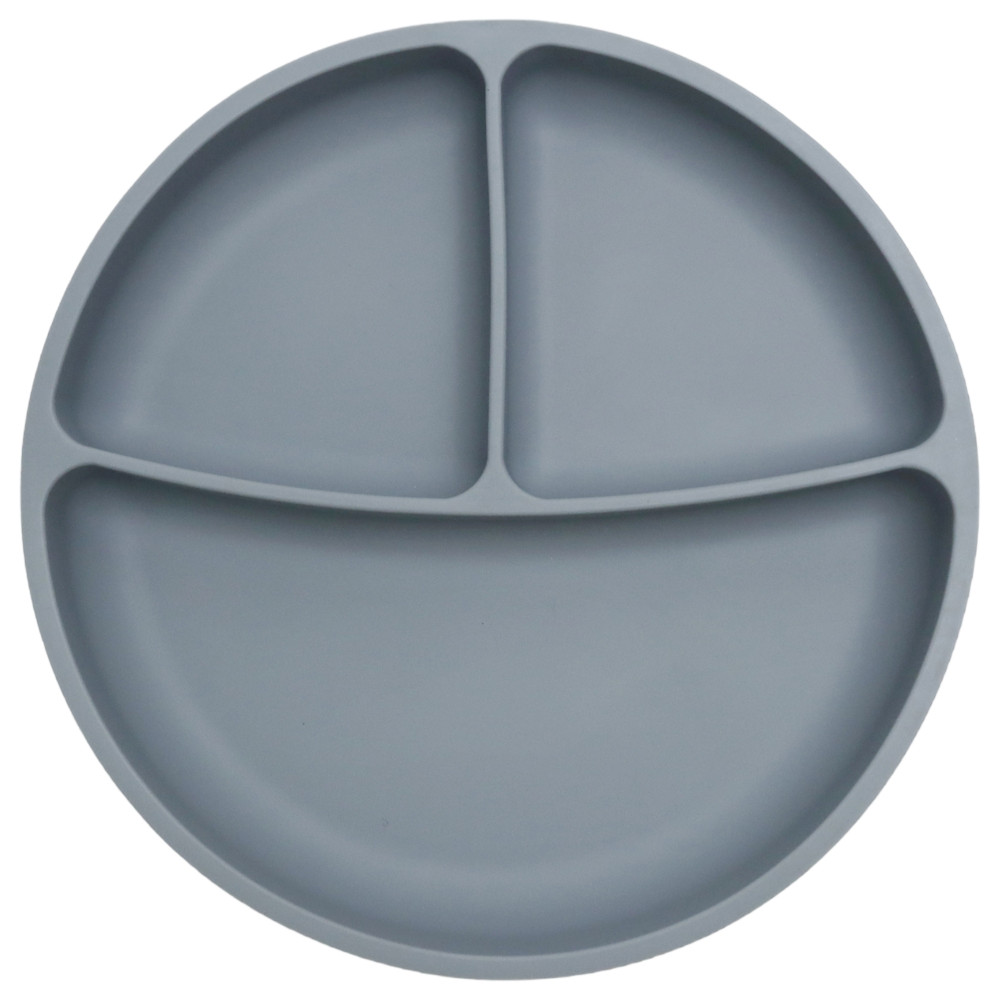 Piatto in silicone con ventosa e scomparti per bambini, BLW, grigio