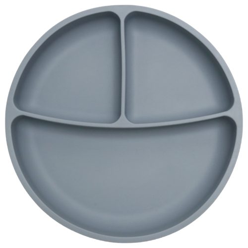 Silikonowy talerzyk okrągły z przyssawką z trzeba przedziałkami, szary