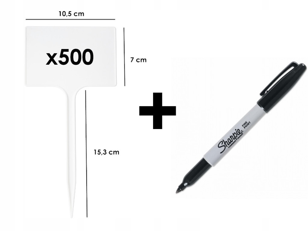 Tabliczki – etykiety ogrodnicze 500 sztuk w zestawie z najwyższej jakości czarnym markerem polecanym przez szkółkarzy roślin na całym świecie.