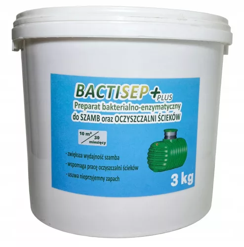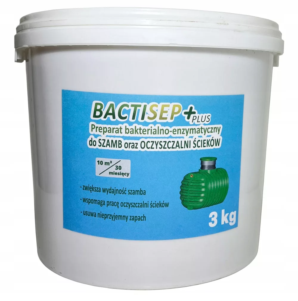 Preparat bakterialno-enzymatyczny do szamb oraz oczyszczalni ścieków BactiSep+Plus to mieszanka bezpiecznych, niechorobotwórczych pożytecznych bakterii i enzymów, która ekologicznie rozpuszcza substancje organiczne w szambach oraz przydomowych oczyszczalniach ścieków. Tworzy i utrzymuje naturalny proces rozkładania.