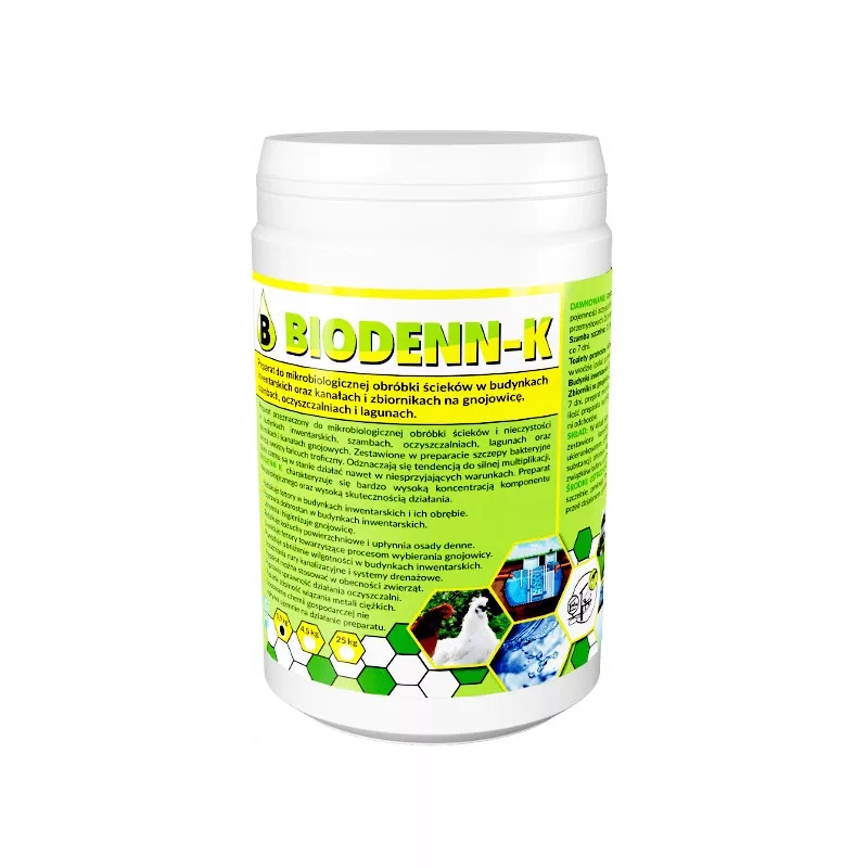 Preparat przeznaczony do mikrobiologicznej obróbki ścieków i nieczystości w szambach i oczyszczalniach. Charakteryzuje się bardzo wysoką koncentracją biokomponentu mikrobiologicznego. Ponad 2 miliardy bakterii w jednym gramie biopreparatu. Udrażnia rury kanalizacyjne, osadniki i systemy drenażowe. Redukuje pokłady osadów dennych w oczyszczalniach a co za tym idzie zmniejsza częstotliwość opróżniania oczyszczalni. Likwiduje nieprzyjemne zapachy (znaczna redukcja amoniaku i siarkowodoru) Poprawia sprawność działania oczyszczalni. Środek absolutnie bezpieczny dla ludzi, zwierząt oraz środowiska. Powoduje rozkład tłuszczów i protein (zapobiega ich krystalizacji) Likwiduje kożuchy powierzchniowe. Hamuje rozwój patogennych drobnoustrojów, w tym bakterii nitkowatych, zapobiega efektowi “puchnięcia ścieków”