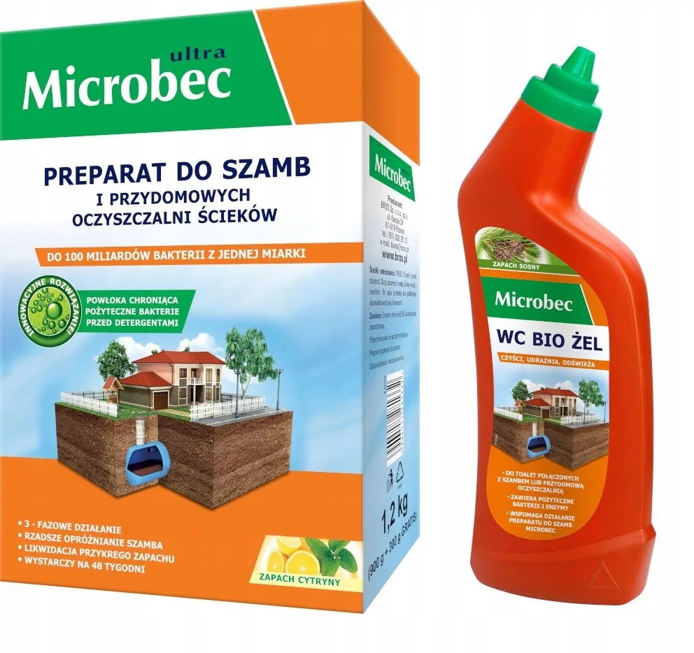 Enzymatyczny preparat do biodegradacji zawartości szamba oraz przydomowych ekologicznych oczyszczalni ścieków. Systematyczne stosowanie Microbec`u zmniejsza częstotliwość opróżnienia szamb, zmniejsza ilość osadów w zbiornikach, upłynnia ich zawartość ułatwiając biologiczny rozkład lub wywożenie.