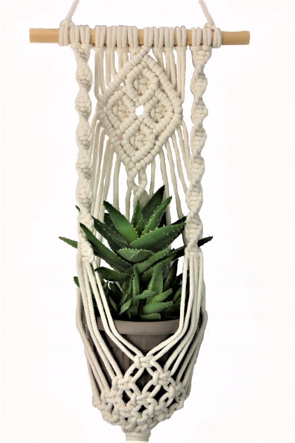 Kwietnik ze sznurka bawełnianego plecionego, o grubości 5 mm, zakończony drewnianym drążkiem. Kolor kwietnika ecru lub inny z wzornika ( podaj jaki ).