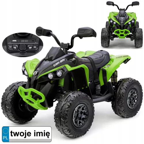 Terenowy Quad CAN-AM amortyzatorach tylnych, zapewni każdemu małemu kierowcy mnóstwo frajdy podczas jazdy. Pojazd został bogato wyposażony. Posiada min. panel muzyczny, oświetlenie przód/tył, miękki fotel obszyty ekoskórą z pasami bezpieczeństwa oraz wygodną kierownicę z osłonkami. Komfortowy quad sprosta wymaganiom każdego kierowcy.
