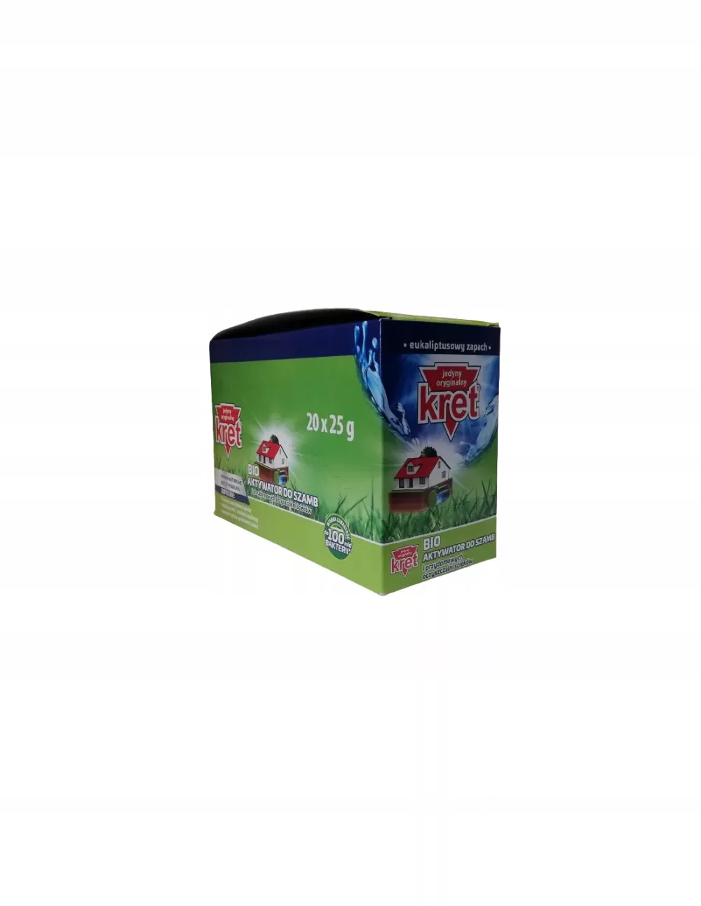 Kret BIO Aktywator do szamb i przydomowych oczyszczalni ścieków. Nowoczesny mikrobiologiczny preparat przeznaczony do biodegradacji zawartości szamb i osadników. Zawiera aktywne enzymy i bakterie, które po zastosowaniu produktu namnażają się, skutecznie wspomagająć naturalne procesy biologicznego rozkładu: degradują tłuszcze, upłynniają osady stałe, udrożniają przewody kanalizacyjne, likwidują przykre zapachy.