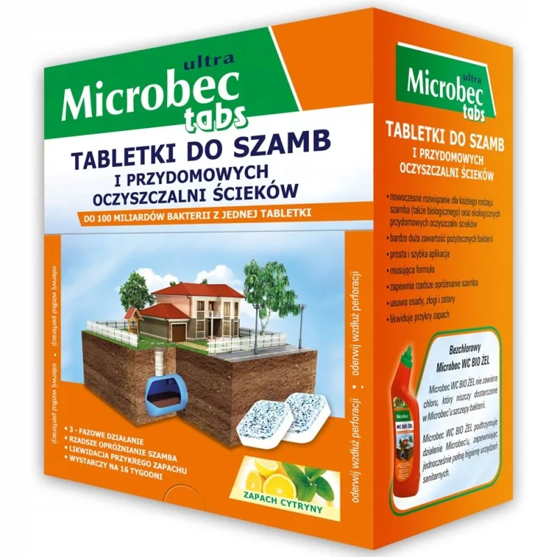 Mikrobiologiczny preparat enzymatyczny w postaci tabletek do biodegradacji zawartości szamba. Systematyczne stosowanie Microbec’u zmniejsza częstotliwość opróżniania szamba, wspomaga pracę przydomowych oczyszczalni ścieków, usuwa nieprzyjemny zapach i udrażnia system instalacji sanitarnej.
