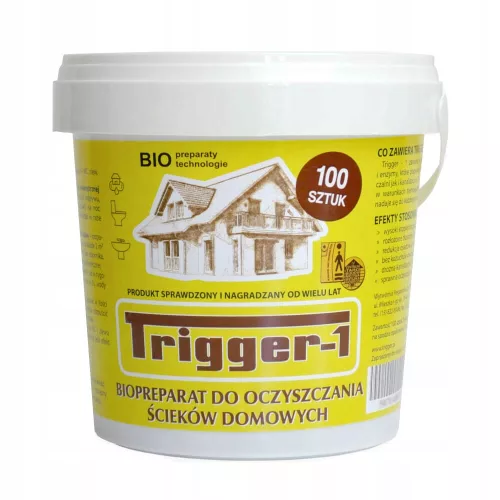 TRIGGER - 1 zawiera enzymy i bakterie rozkładające zanieczyszczenia organiczne w ściekach (odchody, papier, resztki roślinne, tłuszcze) oraz substancje ułatwiające biodegradację środków piorących i myjących.
