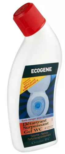 Skutecznie działający Żel WC (Détartrant gel WC Ecogene) to ekologiczny preparat przeznaczony do czyszczenia toalet, pisuarów i bidetów. Czyści i usuwa osady kamienia z czyszczonych powierzchni pozostawiając przyjemny świeży zapach.