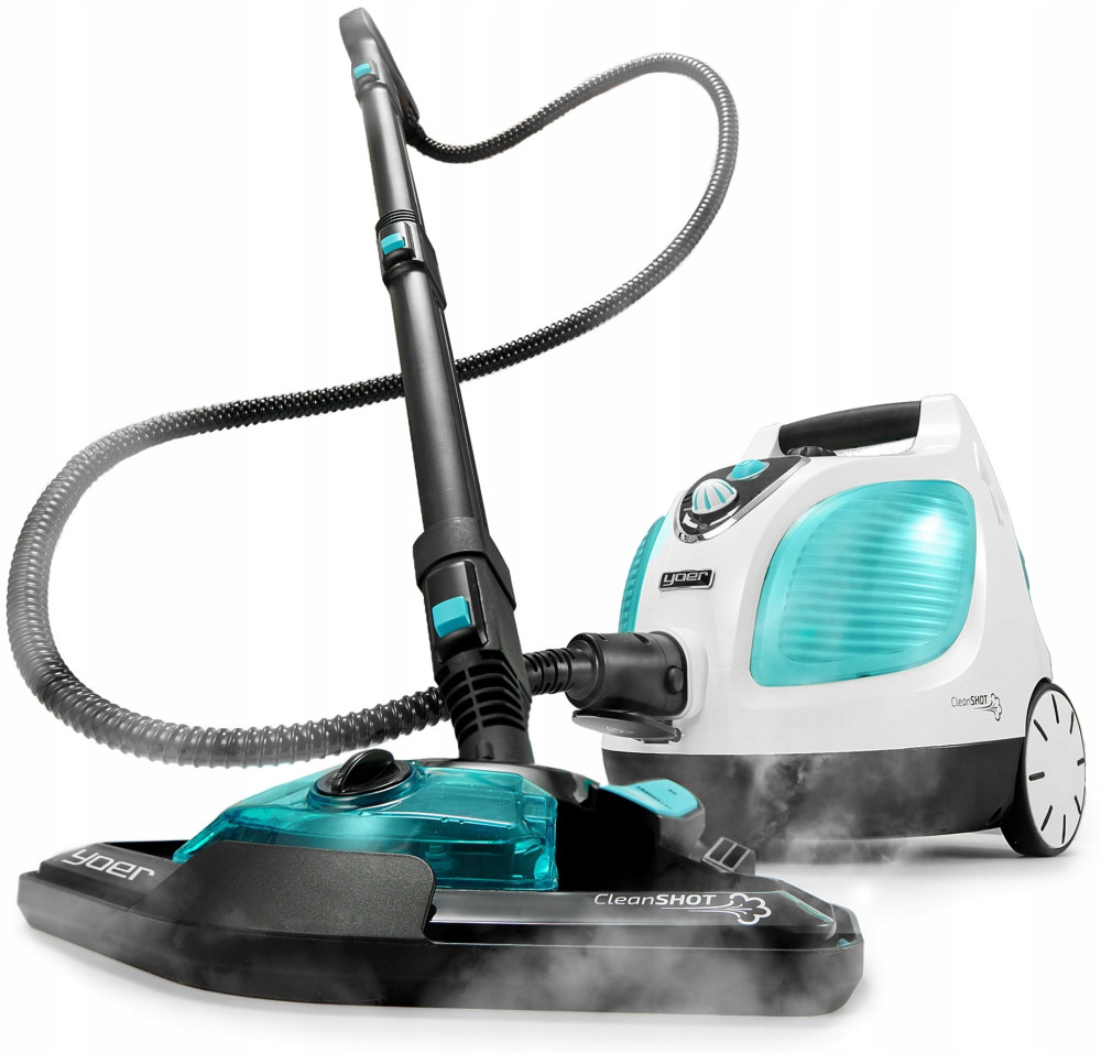 | 2w1 ręczna myjka parowa i mop parowy | Moc 1500W | 55 minut ciągłej pracy | Sucha podłoga w 3 minuty | Zbiornik na detergent | Obrotowa stopa 180° | 8 m - duży zasięg pracy | Specjalne nakładki do różnych powierzchni | Wbudowana szczotka | Certyfikat CE |