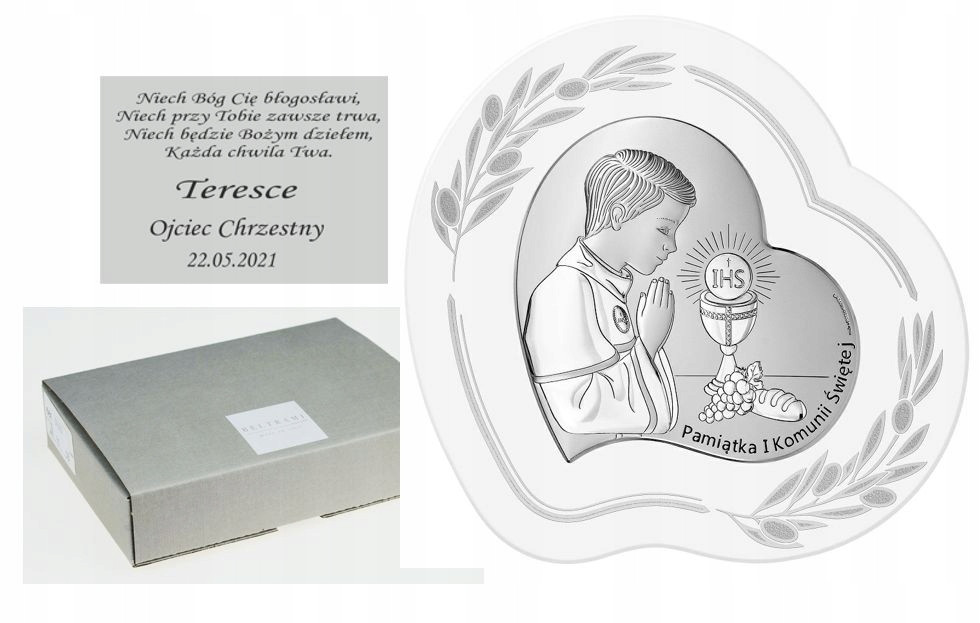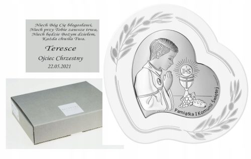 Srebrny obrazek Komunia Chłopiec Grawer Gratis 11x10 cm.