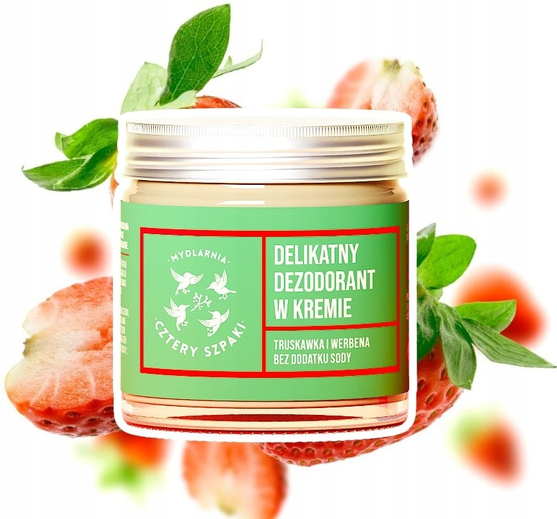 Między innymi dlatego stworzyliśmy idealną alternatywę dla antyperspirantów i blokerów. To kremowy dezodorant zamknięty w szklanym słoiczku, który pochłania wilgoć i neutralizuje nieprzyjemny zapach, a przy tym, nie blokuje naturalnego procesu jakim jest pocenie. Wersja Truskawka i Werbena pachnie naszą bestsellerową serią (czytaj: pysznie), a do tego sprawdzi się idealnie u posiadaczy wrażliwej, delikatnej, skłonnej do podrażnień skóry.