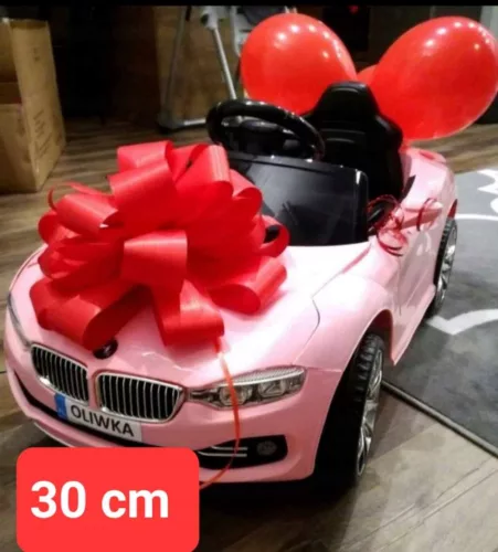 Kokardy "typowo" samochodowe dostępne są w rozmiarach 60 i 80 cm. Do każdej kokardy w tym rozmiarze dołączamy dwie taśmy "wąsy", które schodzą w dół maski.