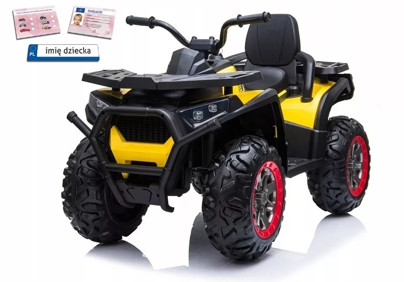 Quad posiada 4 mocne silniki 12V każdy po 45W + Duży Akumulator żelowy 12V 10Ah.