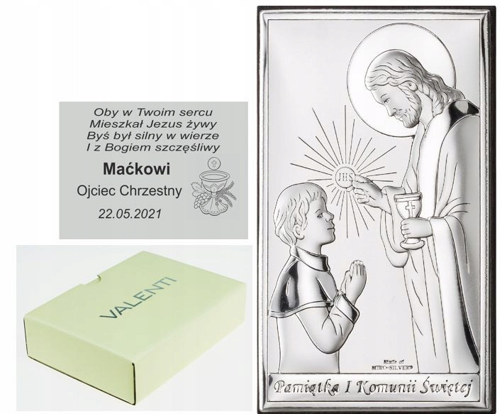 SREBRNY OBRAZEK JEZUS KOMUNIA GRAWER