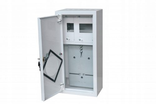 Rozdzielnica licznikowa metalowa 1x1F na licznik elektroniczny + 6 zabezpieczeń zamek okienko RAL 9003A-RZ9E
