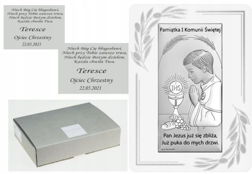 Srebrny obrazek Komunia Chłopiec Grawer Gratis 9.5x13 cm.