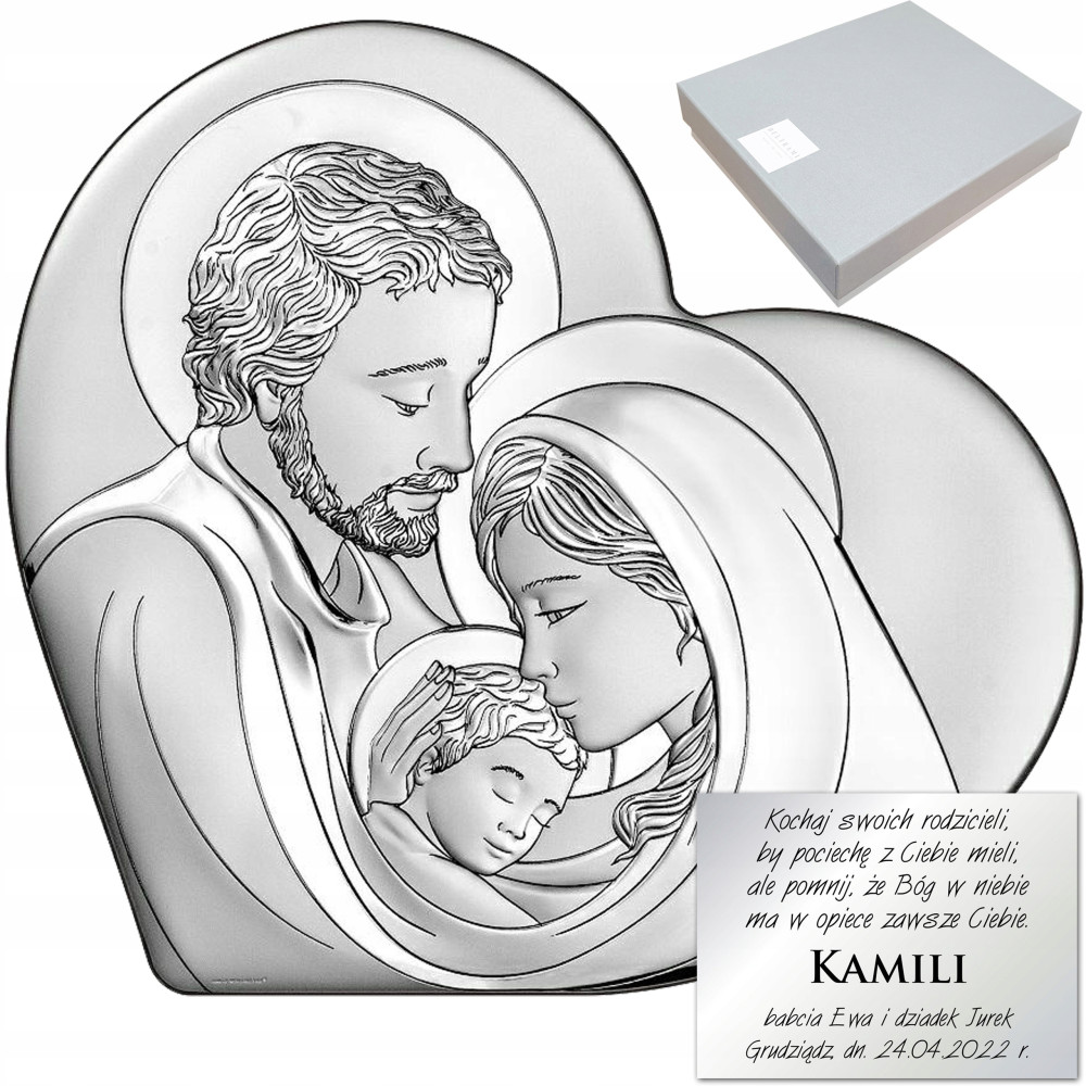 Srebrny obrazek z wizerunkiem Świętej Rodziny jest doskonałym wyborem.