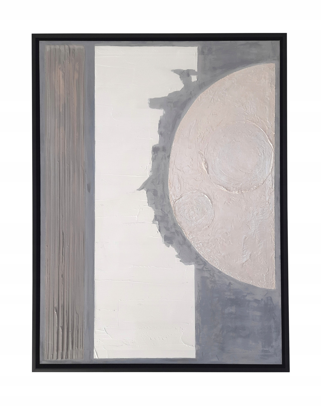 Scopri l'arte moderna fatta a mano con il nostro quadro strutturale dalle forme geometriche, perfetto per ogni ambiente. Quest'opera è realizzata su tela di alta qualità e incorniciata in elegante stile "L". Il design minimalista e modernista, unito a una ricca struttura e a un effetto spaziale, crea un'interessante dinamica di luci e ombre accentuate dall'uso di vernici acriliche. Ideale per decorare il soggiorno, l'ufficio, un loft, la camera da letto o la sala. Ogni pezzo è un unico esemplare artigianale dotato di certificato di autenticità. Aggiungi un tocco di classe e unicità al tuo spazio con questo esclusivo quadro strutturale!