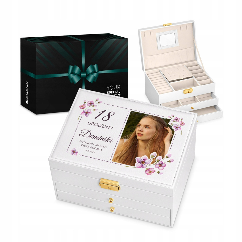 Szkatułka na biżuterię z nadrukiem to wyjątkowy i praktyczny prezent, stworzony z myślą o obdarowanej osobie.