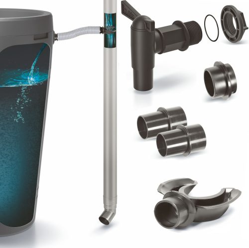 System doprowadzająco-odprowadzający wodę deszczową.Kranik jest wyposażony w dodatkową uszczelkę i nakrętke sprawia że pasuje do wszystkich zbiorników na wodę deszczową marki Waterform. Zawiera 5 elementów: reduktor; łapacz wody; kranik.