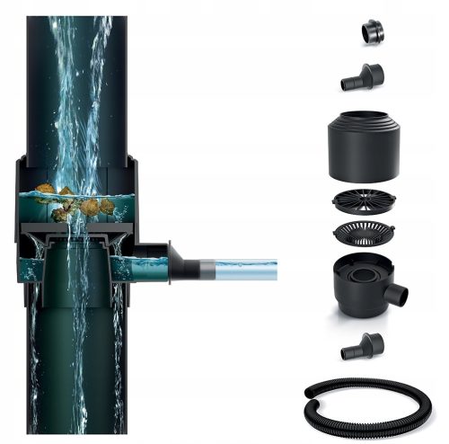 Filtr rynnowy dodatkowo wyposażony w system przejmowania i przenoszenia wody, którego zadaniem jest filtrowanie i doprowadzanie oczyszczonej wody do zbiornika na deszczówkę