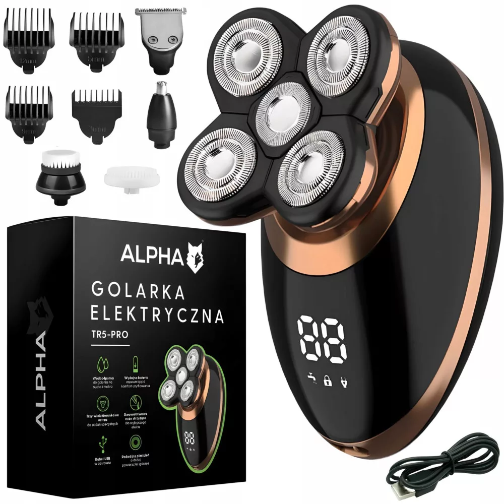 Alpha TR5-PRO to wielofunkcyjne urządzenie, które zapewni Ci wszystko to, czego potrzebujesz do codziennej pielęgnacji. To wszechstronne urządzenie łączy w sobie golarkę, trymer do brody, nosa i uszu oraz szczoteczkę do oczyszczania twarzy, więc nie musisz już kupować kilku osobnych urządzeń! Dodatkowo golarka została wyposażona w wygodny wyświetlacz LCD, który informuje Cię o aktualnym poziomie naładowania baterii i jest wodoodporna, dzięki czemu możesz z niej korzystać zarówno na sucho jak i na mokro.