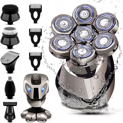 Golarka elektryczna z 7 zdejmowanymi głowicami która zapewnia wszystko czego potrzebujesz do strzyżenia włosów i pielęgnacji twarzy. Przenośna golarka elektryczna to wszechstronne urządzenie, dzięki któremu z łatwością poradzisz sobie nawet z co tygodniowym zarostem lub zadbasz o brodę, wąsy a nawet włosy z klatki piersiowej czy też nosa i uszu. Dzięki niej w ciągu kilku minut możesz stworzyć wizerunek stylowego i eleganckiego mężczyzny.