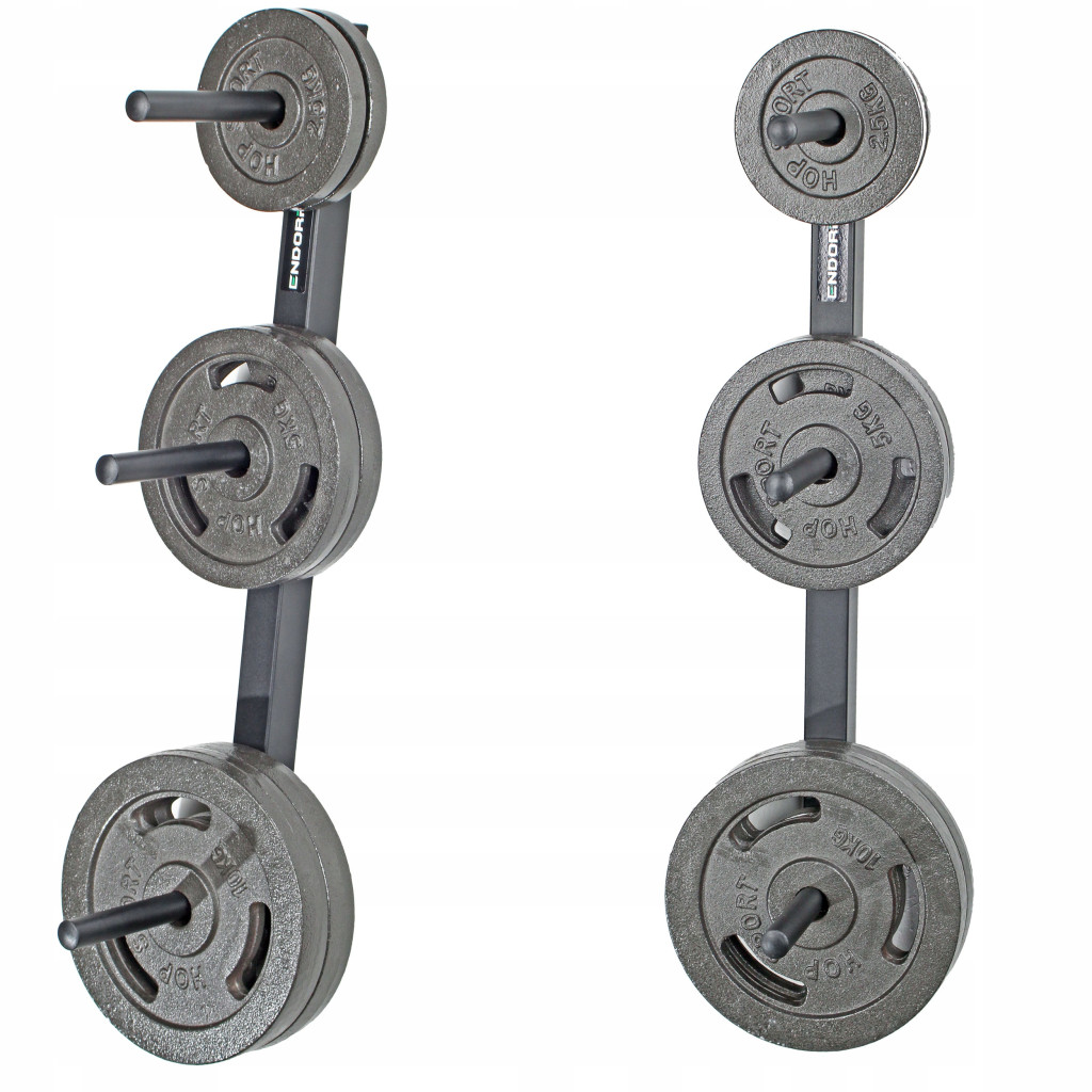 Wieszak na obciążenia Endorfit mocowany do ściany. W mieszkaniu lub domowej siłowni pozwoli przechowywać talerze obciążeń w sposób bezpieczny i zapewniający dużą oszczędność miejsca. Uchwyt na obciążenia EH-S103 wykonany jest z profilu stalowego, a jego powierzchnia została wykończona trwałym malowaniem proszkowym.