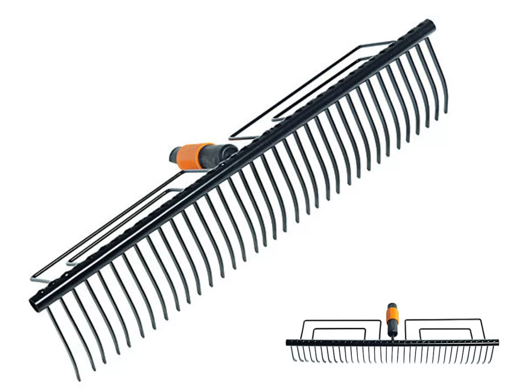 Szerokie narzędzie przeznaczone do zbierania liści i skoszonej trawy