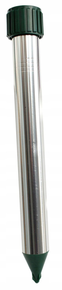 Bateryjny aluminiowo-plastikowy odstraszacz jest świetnym rozwiązaniem na wypędzenie z trawnika nieproszonych gości takich jak krety, nornice lub inne szkodniki. Urządzenie wydaje nieprzyjemny dla gryzonia dźwięk, po czym intruz ucieka poza zasięg dźwięku i przenosi się w inne miejsce. Zasilane jest 4 bateriami LR20 1,5V (brak w zestawie). Odstraszacz należy umieścić w glebie pionowo. Urządzenia nie należy wciskać w ziemię na siłę. W przypadku gleby suchej i piaszczystej zalecane jest użycie dwóch urządzeń na powierzchnię 800 m&sup. W celu zapewnienia długiej trwałości urządzenia i nie dopuszczenie do zalania go przez opady należy bardzo dokładnie dokręcać pokrywkę po każdej wymianie baterii. Podczas częstych i obfitych opadów lub mrozu, należy wyjąć urządzenie z gleby.