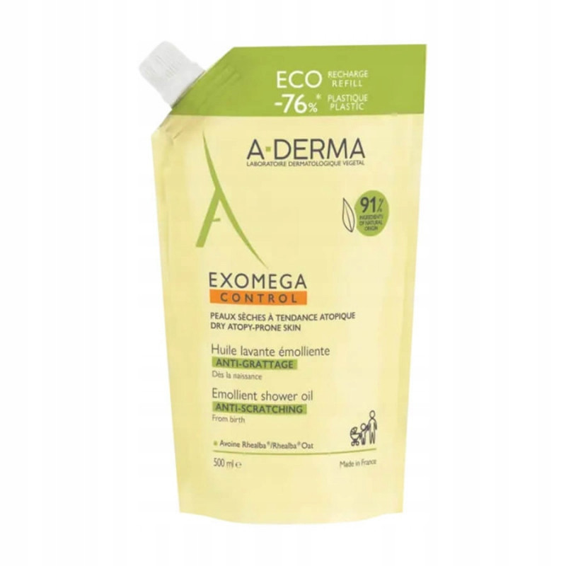 A-Derma Exomega Control, olejek emolient pod prysznic, uzupełnienie 500 ml to kosmetyk przeznaczony do delikatnego oczyszczania ciała, dla skóry suchej i atopowej. Oczyszcza w delikatny sposób suchą i skłonną do atopii skórę niemowląt, dzieci i dorosłych. Łagodzi uczucie swędzenia suchej skóry ze skłonnością do egzemy atopowej. Jest biodegradowalny. Składa się w 91% ze składników naturalnych.