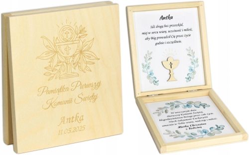 Do pamiątki komunii można dodać dziesiątkę różańca, z drewnianymi koralikami w kolorze naturalnym (opcja dodatkowo płatna)- ofertę znajdą Państwo w dziale "kup w zestawie" lub przeglądając nasze pozostałe oferty.